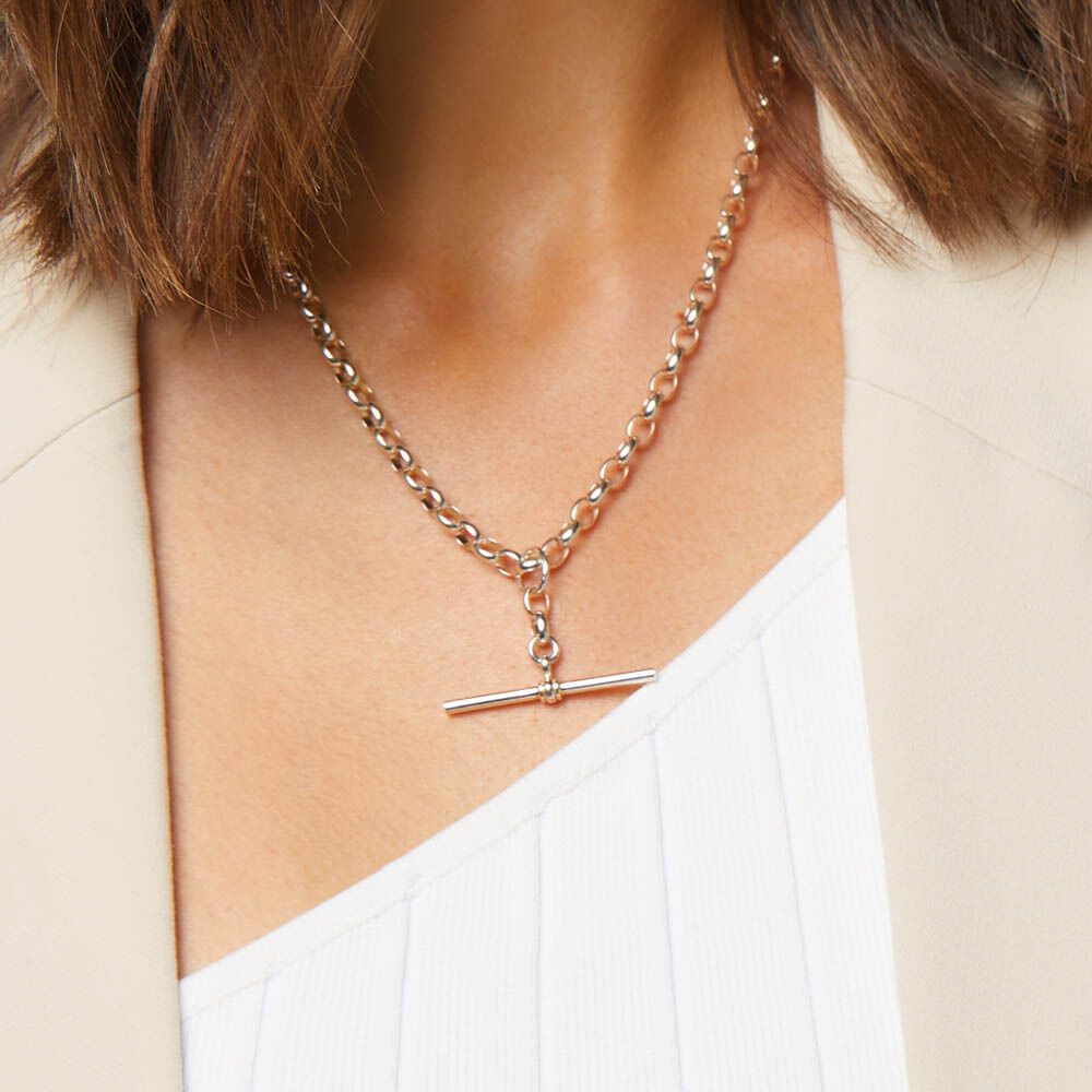 Sterling Silver 50cm Oval Belcher Chain With T Bar Fob Necklaces Pascoes The Jewellers
